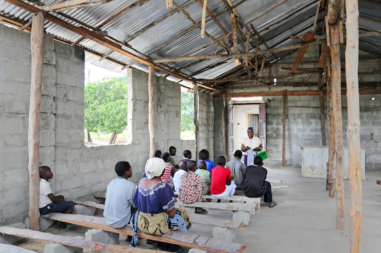 She finds the two young women waiting for her at the half-finished church of St Teresa of Kiromo. Some local residents have decided to join them in the hope of attending a catechism lesson. They will not be disappointed, as Margaret is an expert catechist and needs no special preparation today. She takes her book of lessons from her green bag and explains to her listeners that Christian parents must give a good example to their children and be their first teachers. After about half an hour the small gathering disperses, satisfied. Margaret shows her appreciation for the preparations the two young catechists have made for the Sunday Mass and encourages them to continue their work. Now it is time for her to return home.