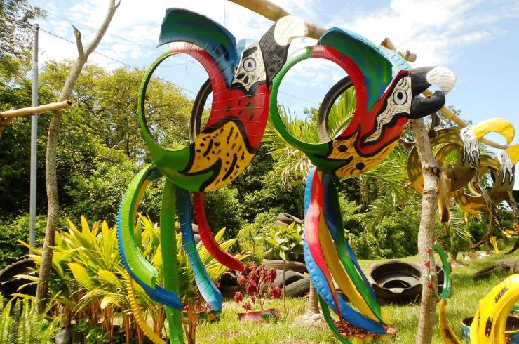“That’s how I started,” Francisco says. “I collected old tyres and tried to reshape them. I made elegant and beautiful (in my opinion, of course!) figures out of the rubber.” Then Francisco tried to sell his handicrafts at one of the most famous artisan markets in Nicaragua, the Masaya Market. Masaya is not only a popular artisan centre but also a breeding ground for creative people. Francisco immediately realised that his original and innovative handicrafts were appreciated. He was soon able to sell his first works: some bird-shaped vase holders.