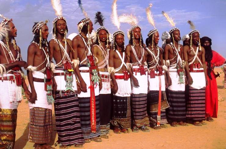 The closeness between the two groups in Niger is such that the Peul have taken on some of the typical elements of the Tuareg parure in their clothing, such as the turban, the traditional sword, called takuba, and the red leather cases to be worn around the neck and displayed towards the front, useful for holding tobacco or money.
